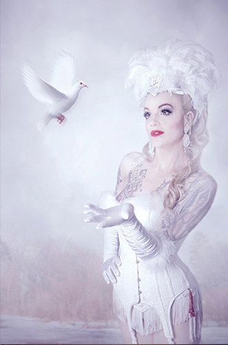 “Burlesque at it’s best with a rocking VOICE!”“… ein frivoles, exotisches Spektakel der modernen Burlesque…“